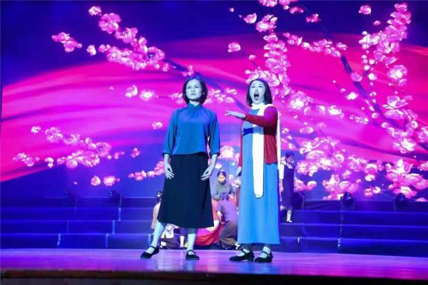 根据党的百年奋斗征程,整场演出共分为五大篇章。《绣红旗、红梅赞》在第一篇章《红日照东方》中出场,它情景再现了江姐在得知新中国成立这一振奋人心的消息后,扯下红花被面,与狱友们缝制五星红旗的激动场面,追忆了江姐等共产党人视死如归、钢铁般的意志。本次活动共在鄂尔多斯恰特、泊江海子煤矿、塔拉壕煤矿进行了3个场次演出,丰富多彩的文艺节目为现场观众献上了一场极具震撼力的视听盛宴。