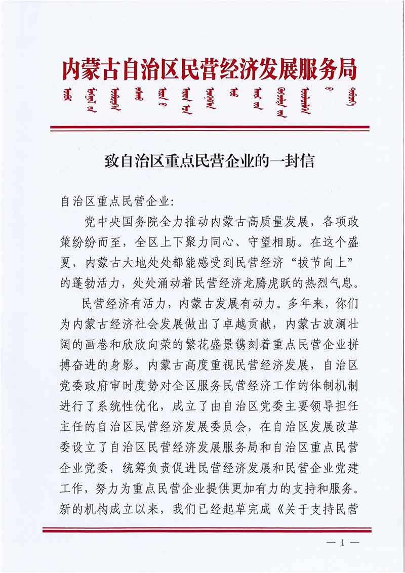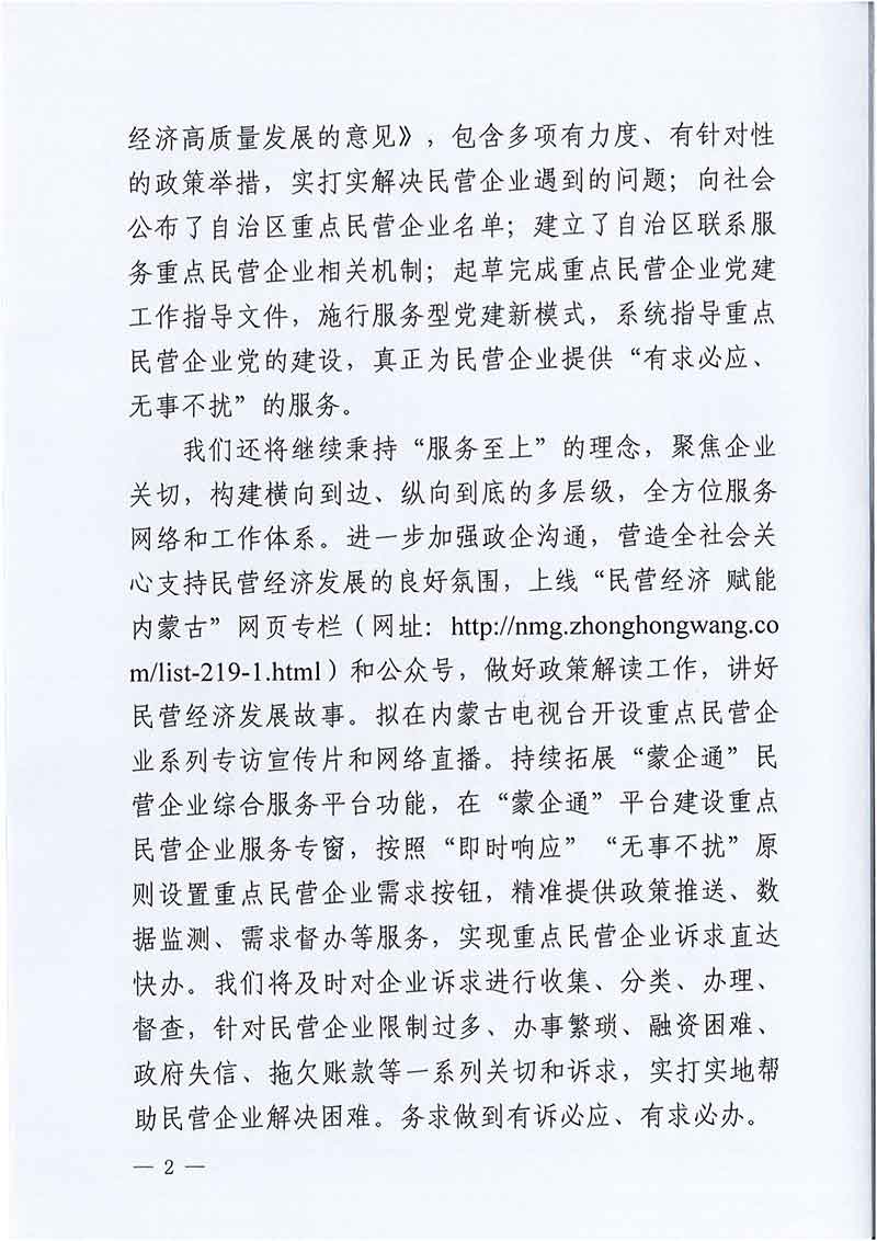 致自治区重点民营企业的一封信